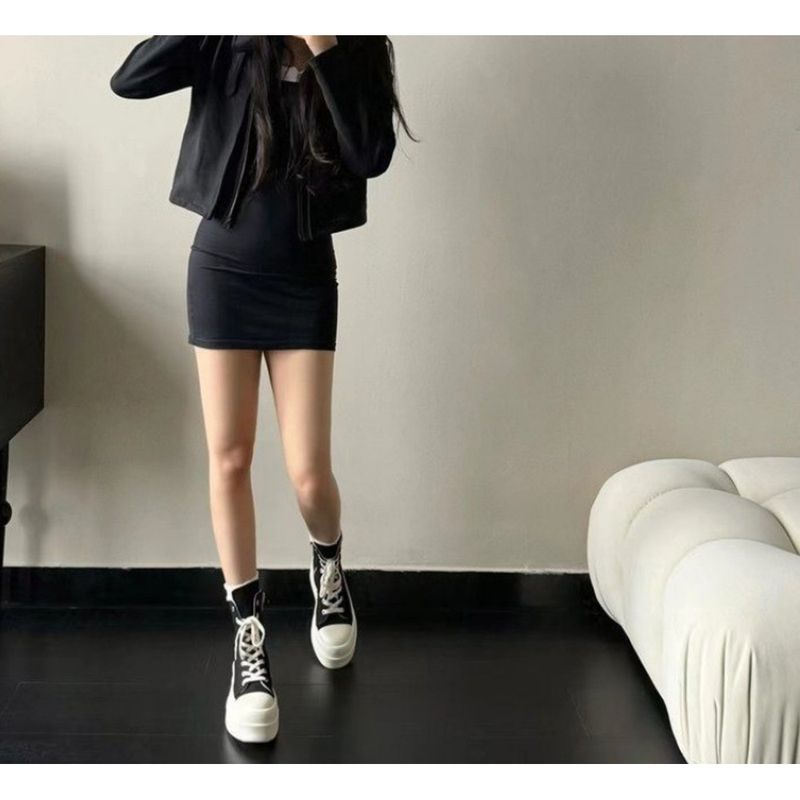 High-top Canvas Thick-soled Shoes for Women, Autumn 2025 New Niche Casual Lace-up Platform Shoes to Match Dresses and Short Boots