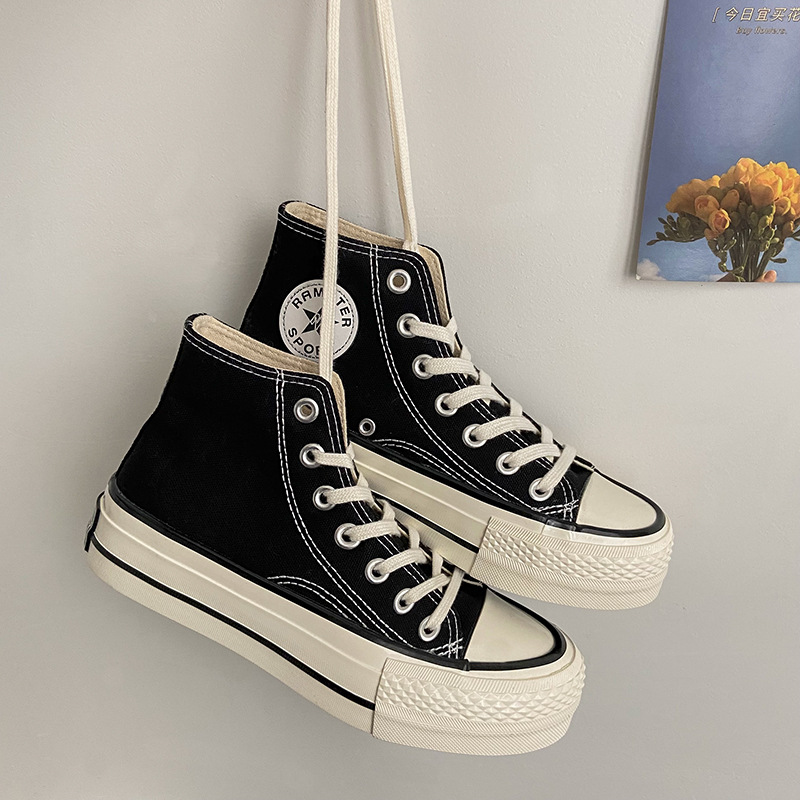 High-Top-Schuhe mit dicken Sohlen, klassische Canvas-Schuhe für Damen, Ulzzang Hong Kong-Stil, vielseitige 2022 neue koreanische Version von Schuhen