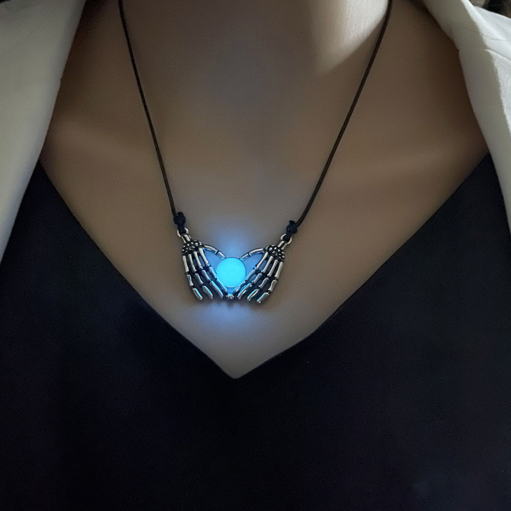 HJJ Halloween-Accessoires-Serie Herz-Punk-Totenkopf-Hand-Perlenkette im Dunkeln leuchtend