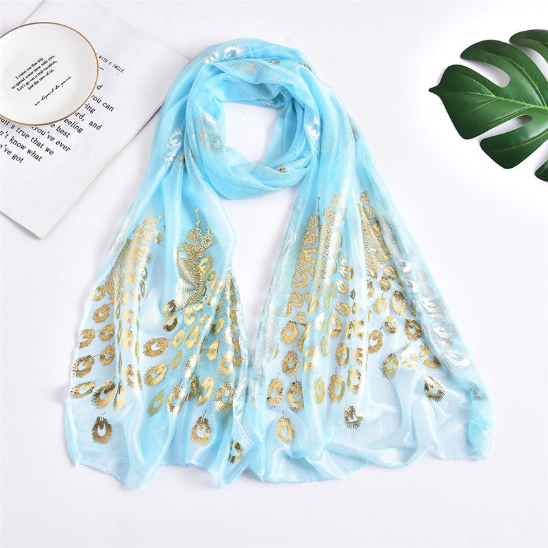 Hochwertiger Schönheitsschleier mit Goldprägung, Pfauenmuster, Bonbonfarbe, eleganter Seidenschal für Damen, Geschenk-Anpassung