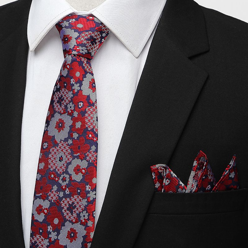 Hochwertiges Seidengarn-gefärbtes Krawatten-Set mit quadratischem Schal und Manschettenknöpfen, lässiges rot gewebtes Hochzeitskrawatten-Set_voghion.com