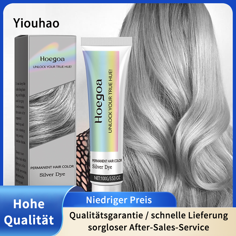 Hoegoa Graues Haarfärbecreme – Langanhaltend, feuchtigkeitsspendend, pflanzlich nährend, trendige Haarfarbe, leicht färbbar