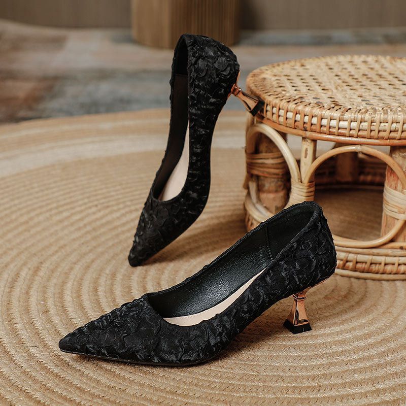 Hohe Dünne Absätze 2025 Neue Spitz Elegante Schwarze Professionelle Büroarbeit Für Frauen Einfache Kleine Ferse Einzelne Schuhe
