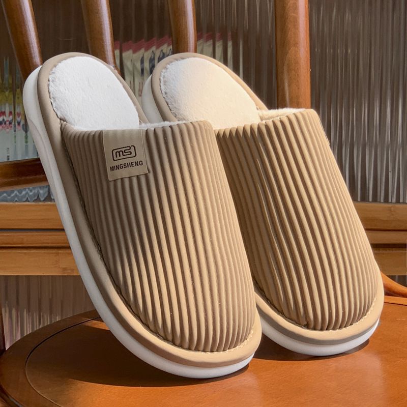 Home PU leder wasserdichte baumwolle hausschuhe männer, herbst und winter, boden wisch für frauen, anti slip indoor paar 2024 neue