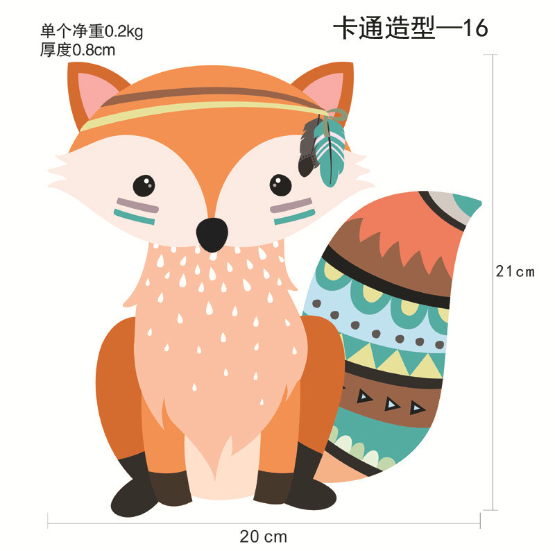 INS Nordic Home Wood Plastic Animal Wall Hanging Cactus Fox Wall Sticker Children's Room Decoration Cartoon Wardrobe Wall Decoration
