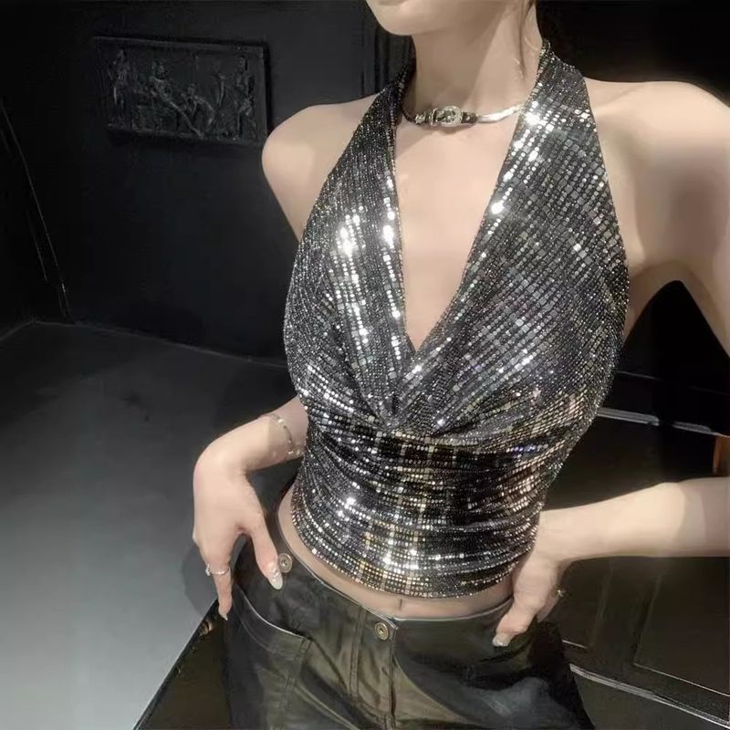 Hosenträger Kleine Weste frauen Pailletten Hals Kurze Neckholder Top Slim Fit Außen