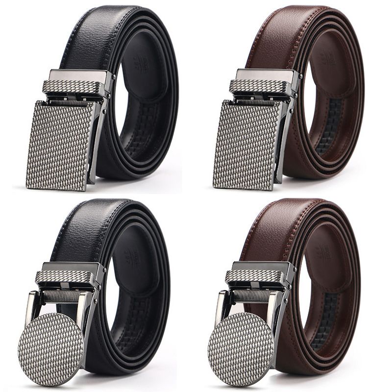 HOT CETIRI Herren-Gürtel aus echtem Leder mit Ratschenklick für Jeans, ohne Löcher, automatische Schiebeschnalle, schwarz-braun