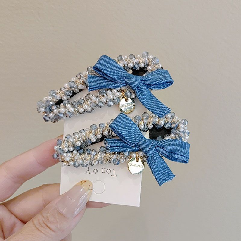 Korean hair accessories versatile new hair accessories temperament accessories bangs clip personality edge clip denim bow hair clip