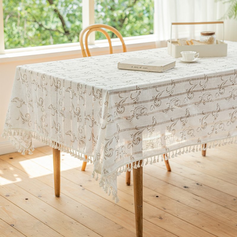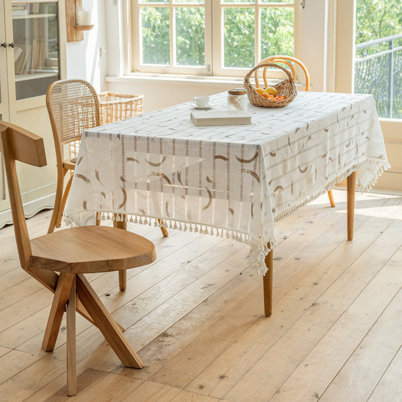 INS Rechteckige Tischdecke aus Vollpolyester, Jacquard-Druck, hohl, geometrisch gestreift, mit Quasten, für Couchtisch und Esstisch