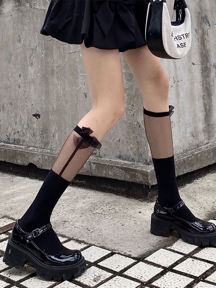 【Fast Refund】Ins Socks for Women Summer Mid-Calf JK High Tube Design Black Lace Thin Stockings Calf Socks Autumn