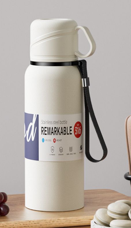 Isolierte Flasche mit großem Fassungsvermögen und Doppeldeckel für Männer und Frauen, Edelstahl und Wassertrennung, tragbar, für die Automontage