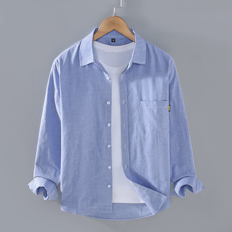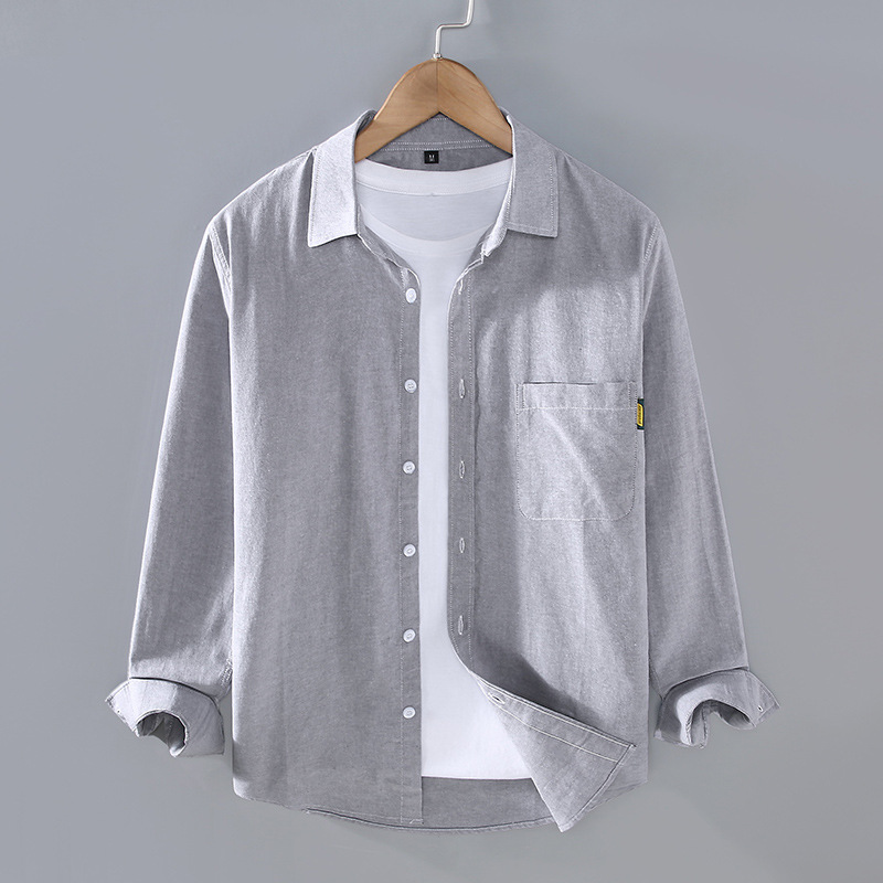 Japanisches, schweres, gesponnenes Oxford-Hemd aus reiner Baumwolle, langärmeliges Herren-Jackendesign für Frühling und Herbst, lockeres und lässiges Hemd