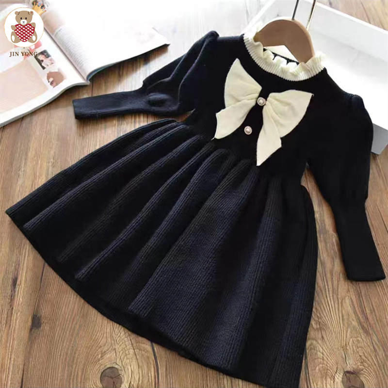 【 Jin Yong 】 Pulloverkleid für Mädchen, koreanischer Herbst- und Winterstil, Kinderärmel, süßer gestrickter Prinzessinnenrock