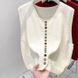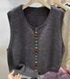 Modische Strickweste für Damen mit Regenbogenknöpfen; ideal zum Überziehen über einen Pullover.