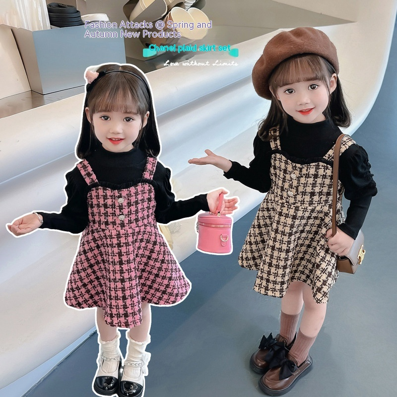 Kariertes Kleid für Mädchen im Herbst, 2024 neue und trendige Kinderkleidung, im Internet bekanntes zweiteiliges Set für den Frühling