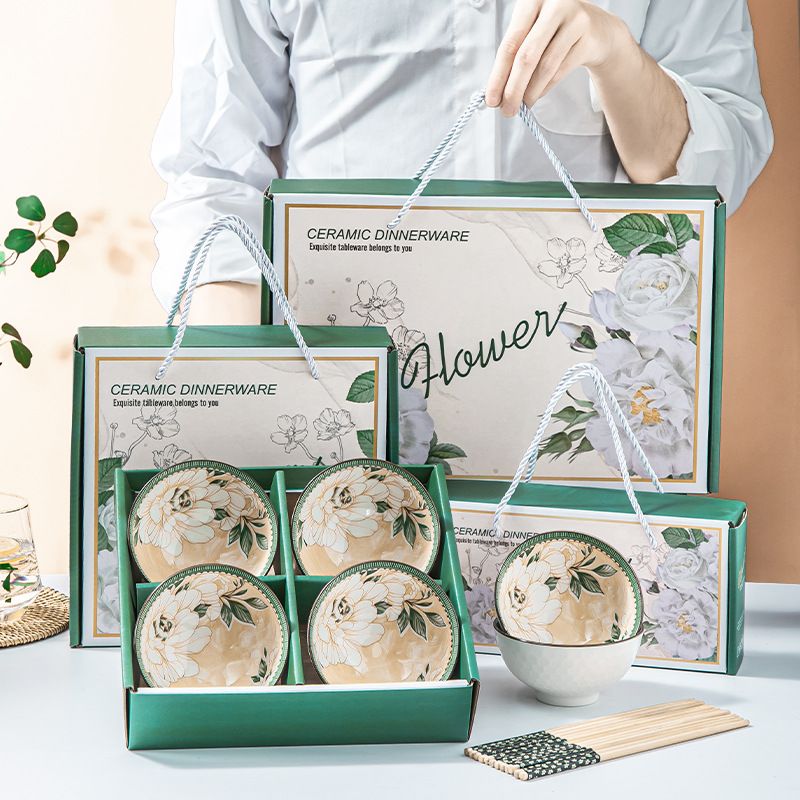 Keramikgeschirr Teller Schüssel und Essstäbchen Geschenkbox-Set für Eröffnungsaktivitäten Hochzeit Ausstellung Souvenirs Kleine Geschenke