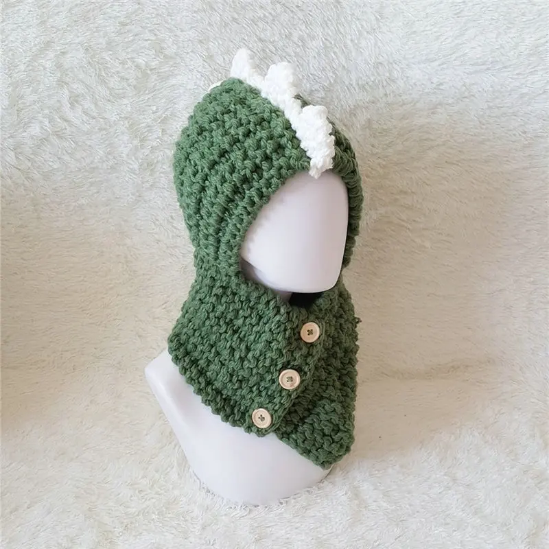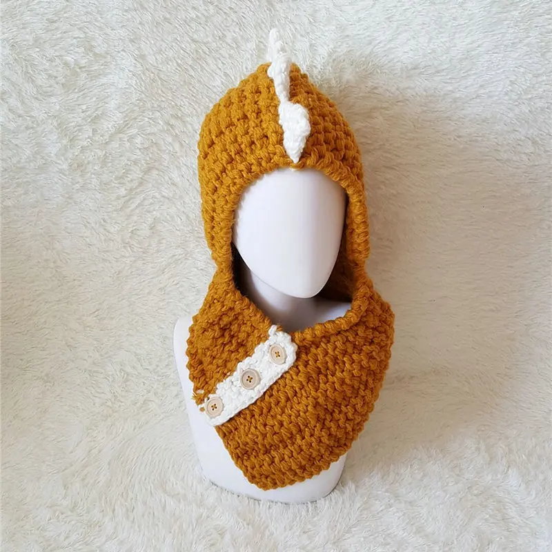 Style Name: Kid Handmade Dinosaur Hat Children Eleka Knitted Cap Boy Girl Neckchief Tubular Scarf 3 Buttons Loop Shawl and Beanie Set YG603