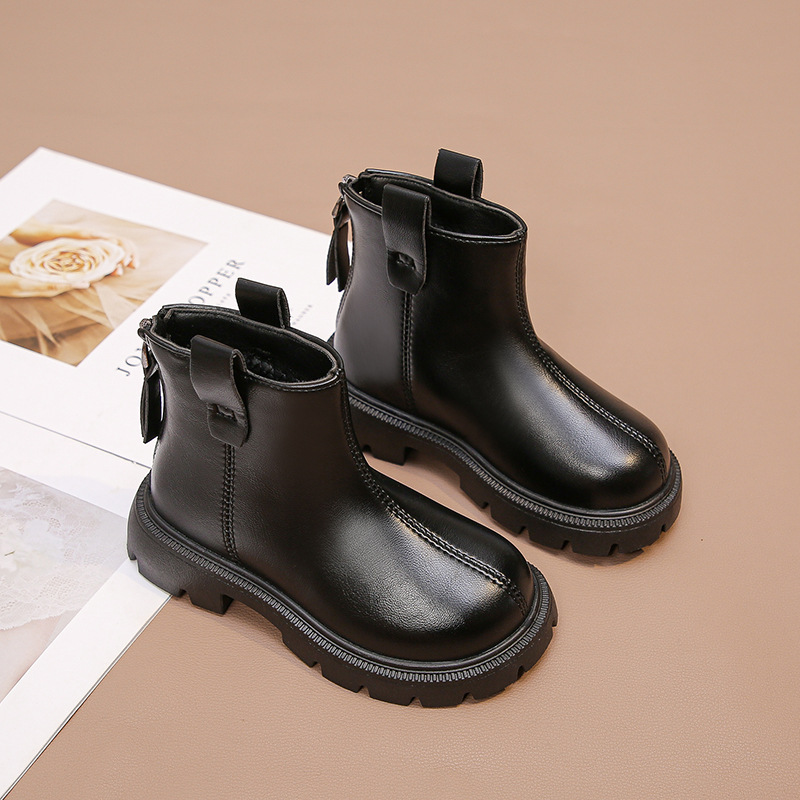 2024 Winter New Children's Simple Velvet Leather Boots for Boys and Girls, Warm Two Cotton Boots for Middle and Large Children, Martin Boots