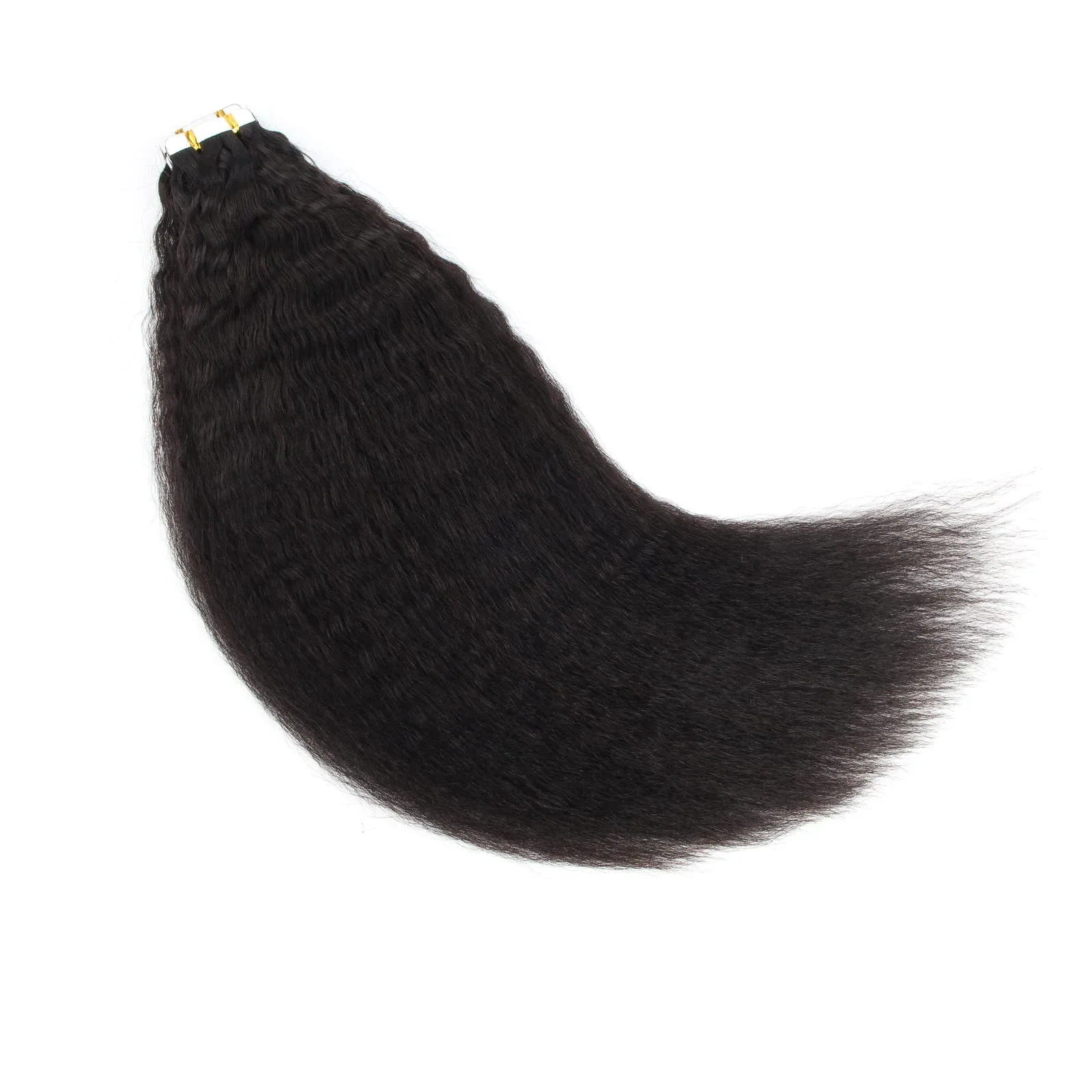 Kinky Straight Tape in Haarverlängerungen Nr. 1B, Echthaar, 16-26 Zoll