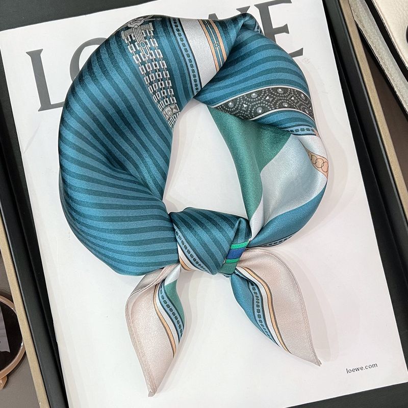 Classic striped leather buckle small square scarf, women's mulberry silk, women's thin design, 100% silk scarf, scarf decoration scarf