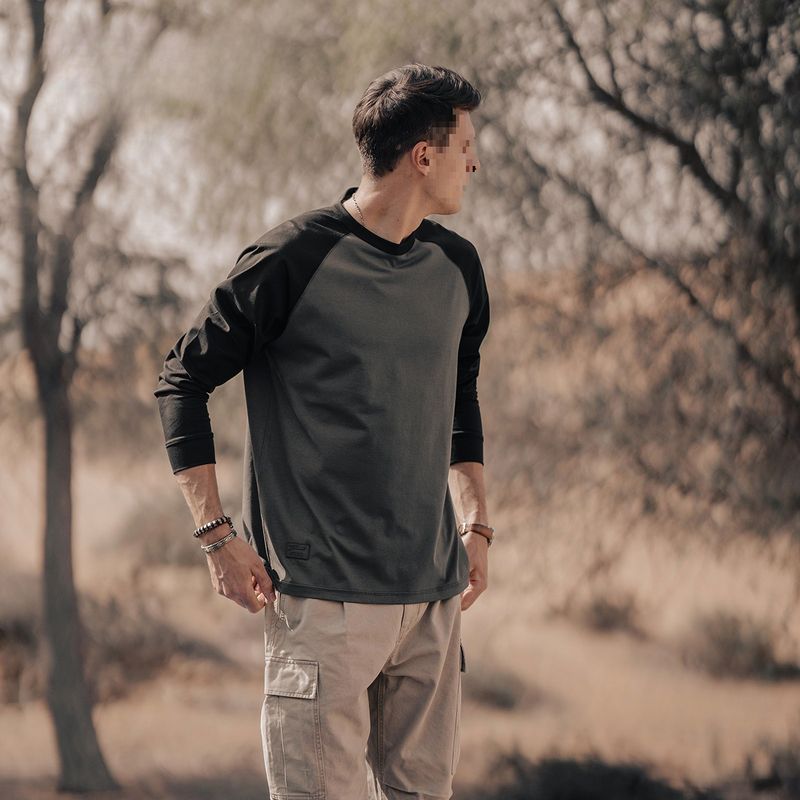 Kleidung [Loose Fit] 240g Sorona Raglan Color Block Rundhals Langarm T-Shirt Herren Freizeit Yitai