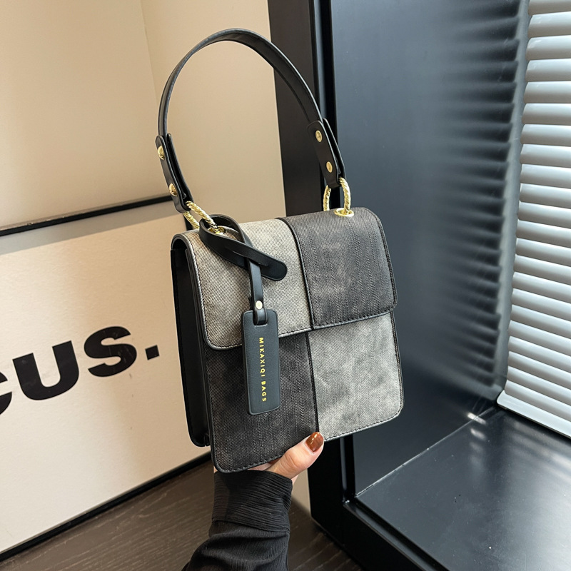 Kleine Retro-Handtasche für Damen, 2024, neue Mode, Kontrastfarbe, kleine quadratische Tasche, Herbst/Winter-Textur, einzelne Schulter-Crossbody-Tasche