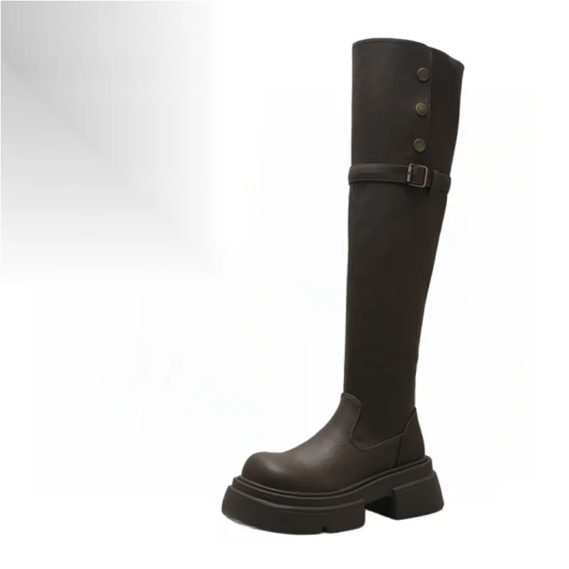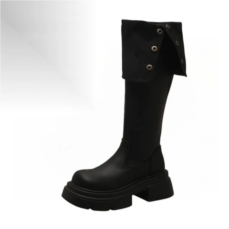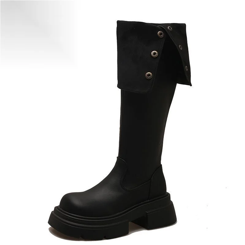 Knielang für Damen im Herbst-Winter, neuer Instagram-Zweiteiler, faltbar, Knight High 2024, kleine Stiefel mit dicken Sohlen