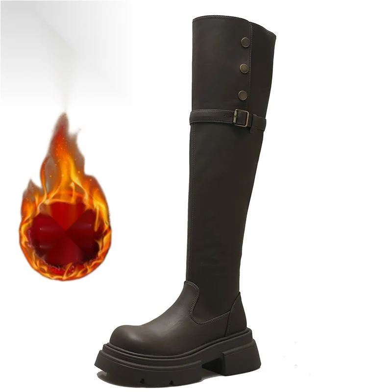 Knee length boots for women in autumn and winter, new Instagram two piece folding Knight high boots 2023, small and thick soled boots with plush added