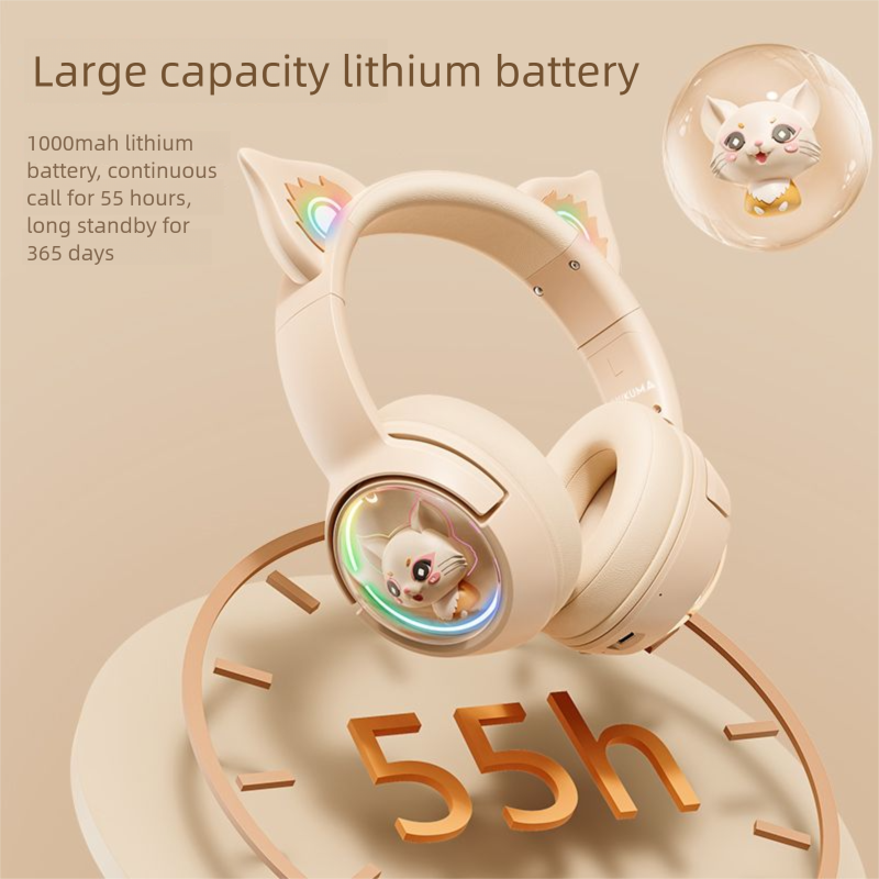 Kopfhörer Kabellos Bluetooth Für Mädchen Computer Gaming Geräuschunterdrückung Hochästhetisches Katzenohr-Kinder-Headset