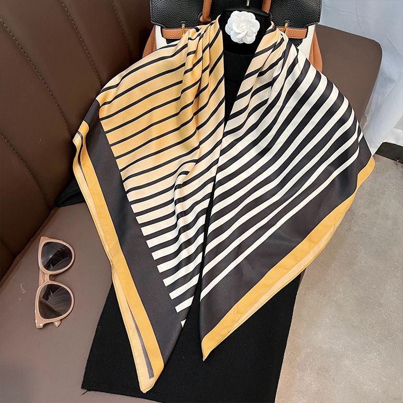 Korean new autumn and winter niche design striped contrasting large scarf women's silk scarf simulated silk scarf multifunctional shawl