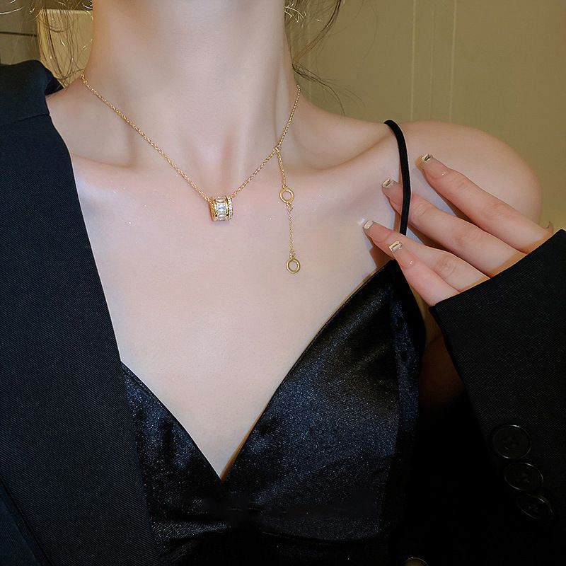 Korean version of small waist necklace for women in 2023, new niche high-end collarbone chain with double rings for spring and summer outfits