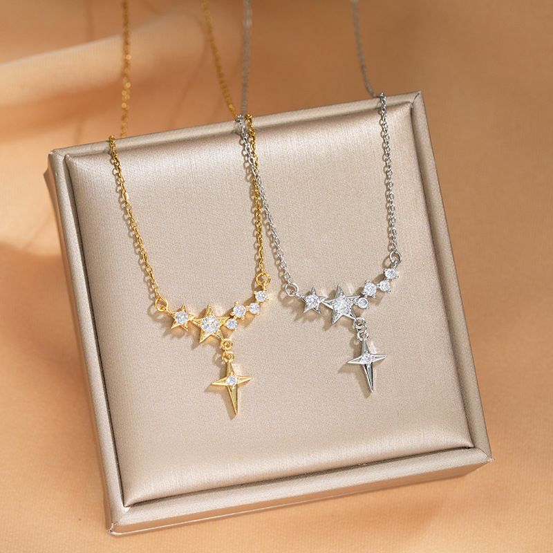 Korean Version New Personalized Design Sense Star Tassel Pendant Titanium Steel Necklace for Women Elegant Versatile Micro Inlaid Full Diamond Jewelry