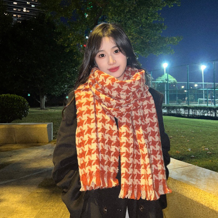 Koreanischer High-End-Qianniao-Gitterquasten-Frauen-Ich-Mitation-Kaschmir-Doppelseitiger länglicher warmer und modischer Schal,