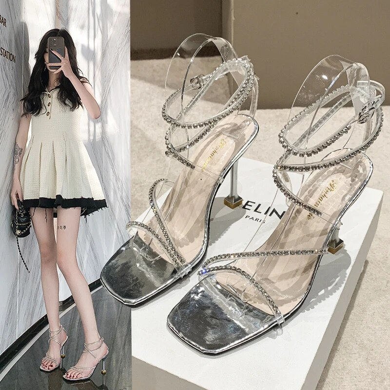 Crystal High Heels Women Shoes Sandals Designer Summer Dress Party Shoes 2024 New Slippers Flip Flops Slides Female Pumps