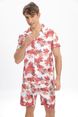 Kurzärmliges Pyjama- und Heimkleidungsset aus bedruckter Kunstseide für Herren