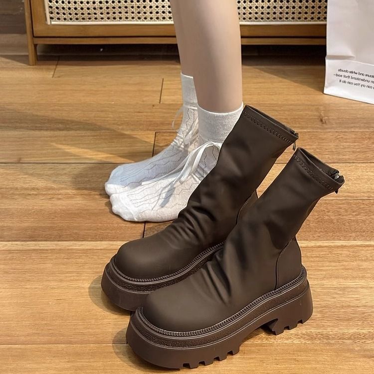 Women's 2025 Fall/Winter New Versatile Chunky-Sole Martin boots Slim-Fit Mid-Calf Short Boots