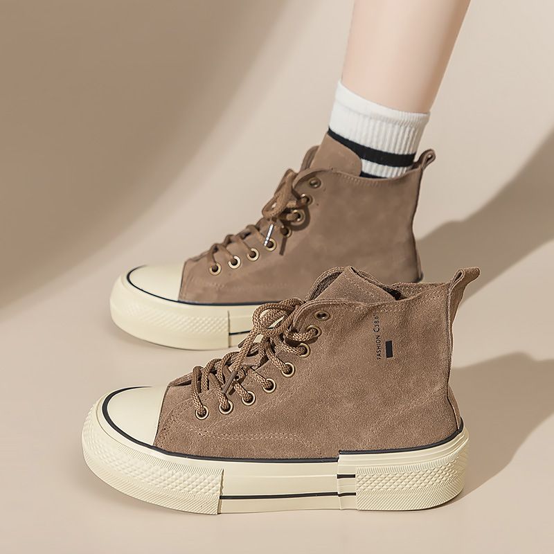 2025 Fall/Winter New Women's High-Top Canvas Sneakers Casual Chunky-Sole Athletic Shoes