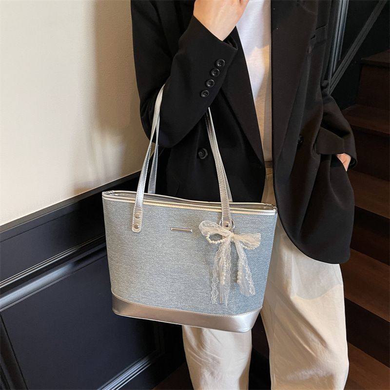 Casual Texture Large Capacity Bag 2025 New Women's Shoulder Fashion Simple Commuter Tote Bag with Bowknot