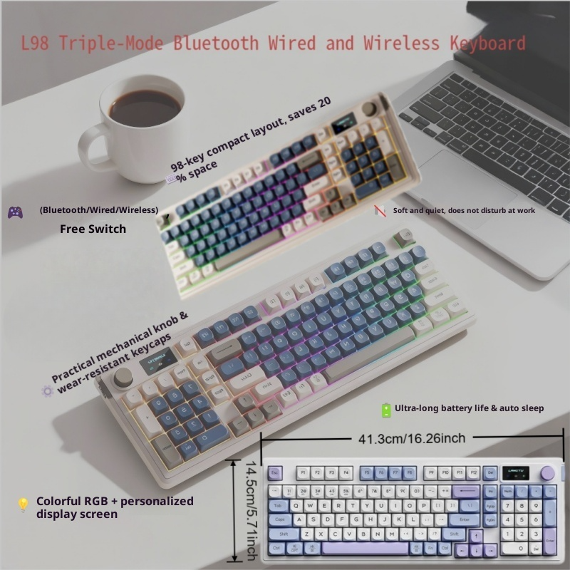 L98 98-Tasten-Kompakt-Kabellose Mechanische Tastatur Mit RGB-Hintergrundbeleuchtung, Knöpfen Und Display | 2,4G Bluetooth Typ-C Triple-Mode-Tastatur Für PC Und Mac