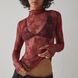 Spitzentop mit halbhohem Kragen und durchsichtiger Netzunterschicht; sexy