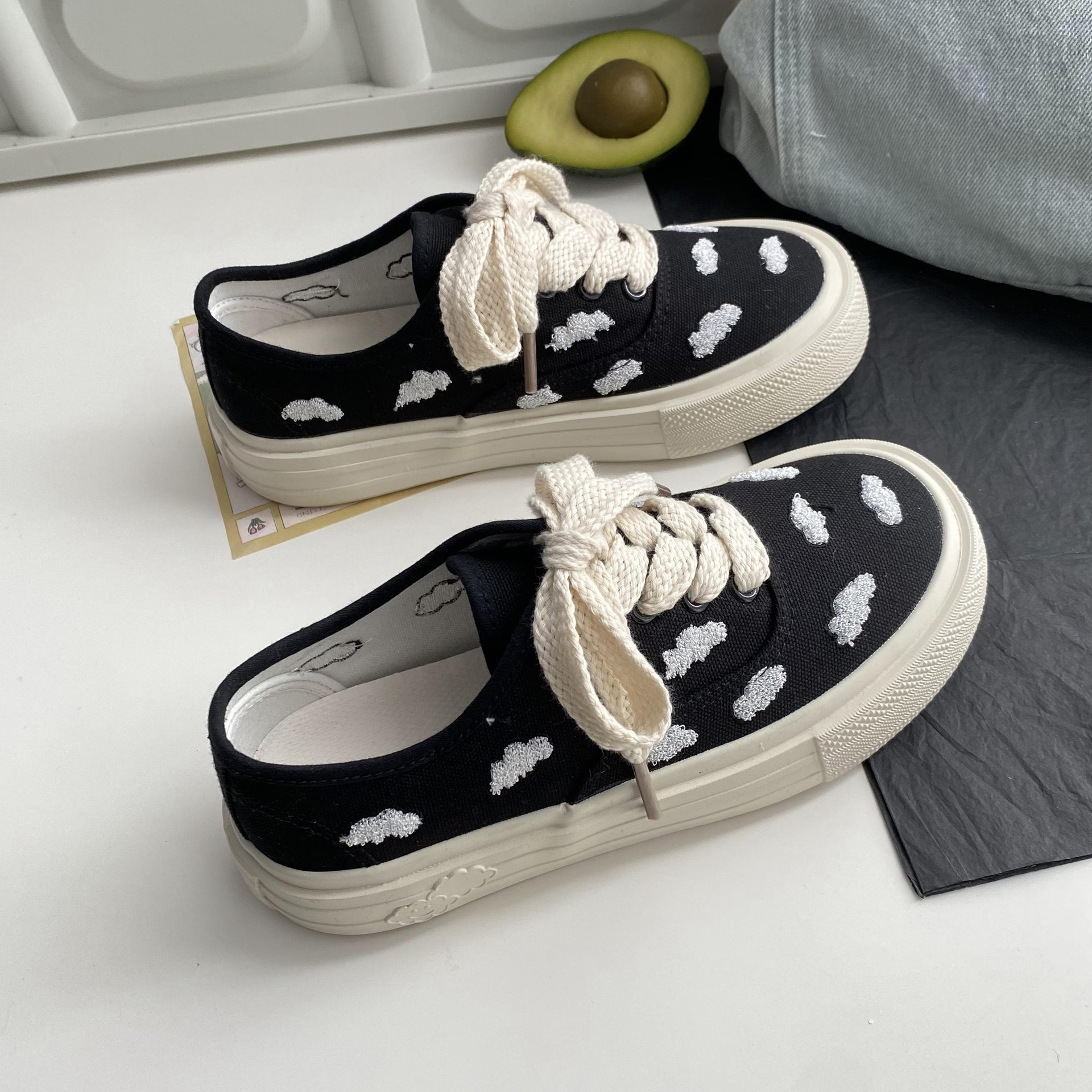 Korean INS Girls' Heart Cloud Canvas Shoes Women's 2023 Summer Casual Shoes Cute Low Top Board Shoes 3099