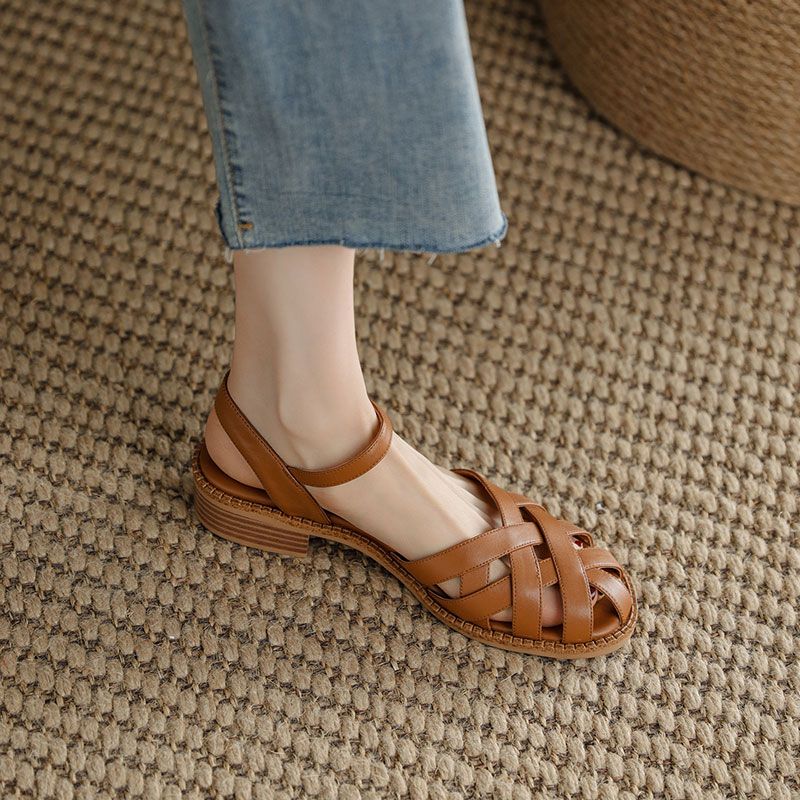Lancui Französisch Stil Peep-Toe Sandalen Für Frauen Sommer 2025 Neue One-Strap Nischen Design Römische Schuhe