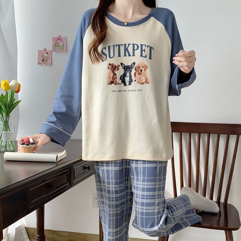 Long sleeved long pants sleepwear for women in spring and autumn, pure cotton for summer, cute women's clothing for girls in junior high school, 2024 new collection