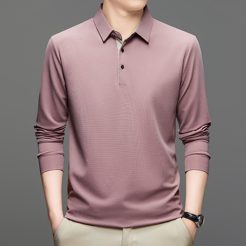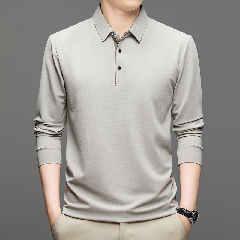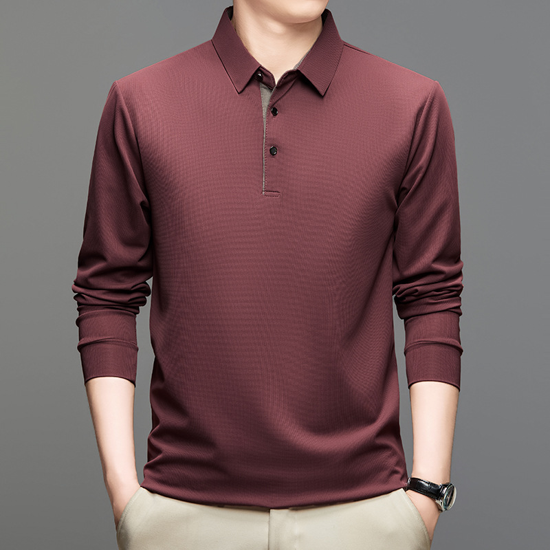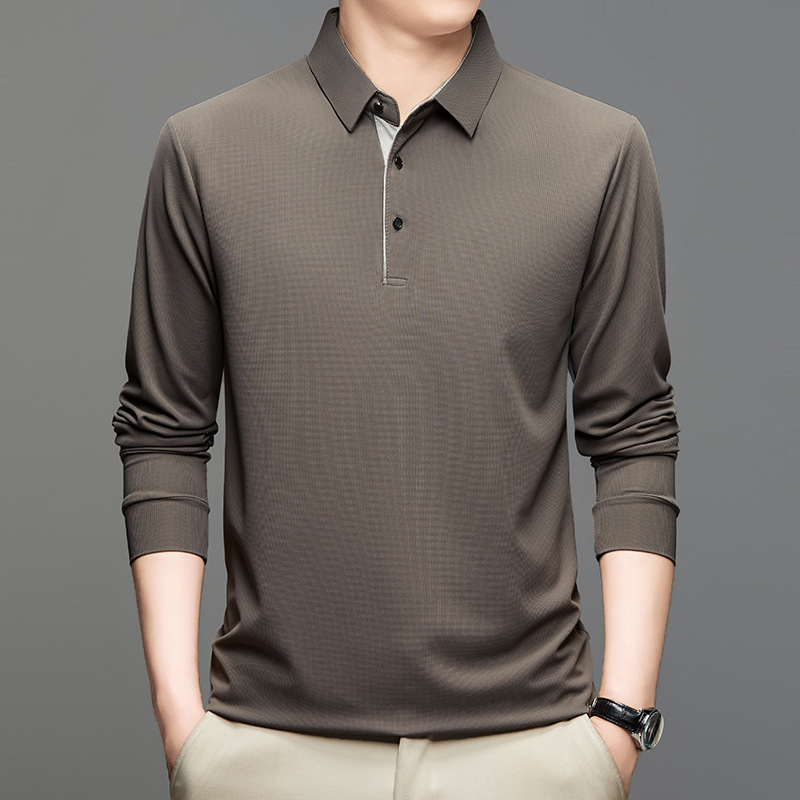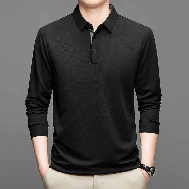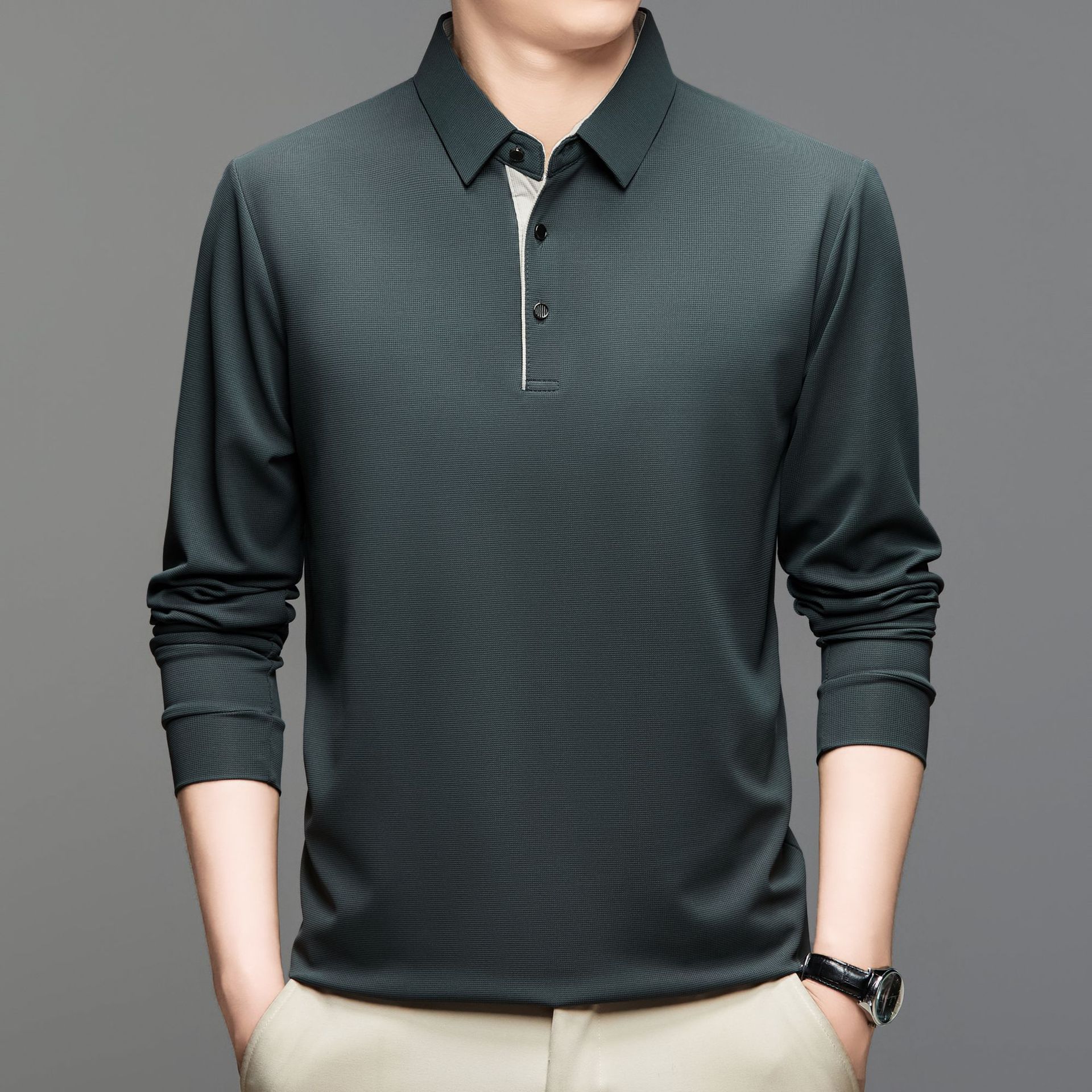 Langarm-Poloshirt für Herren, 2024 Frühling und Herbst Business-T-Shirt mit lockerem Kragen für Herren