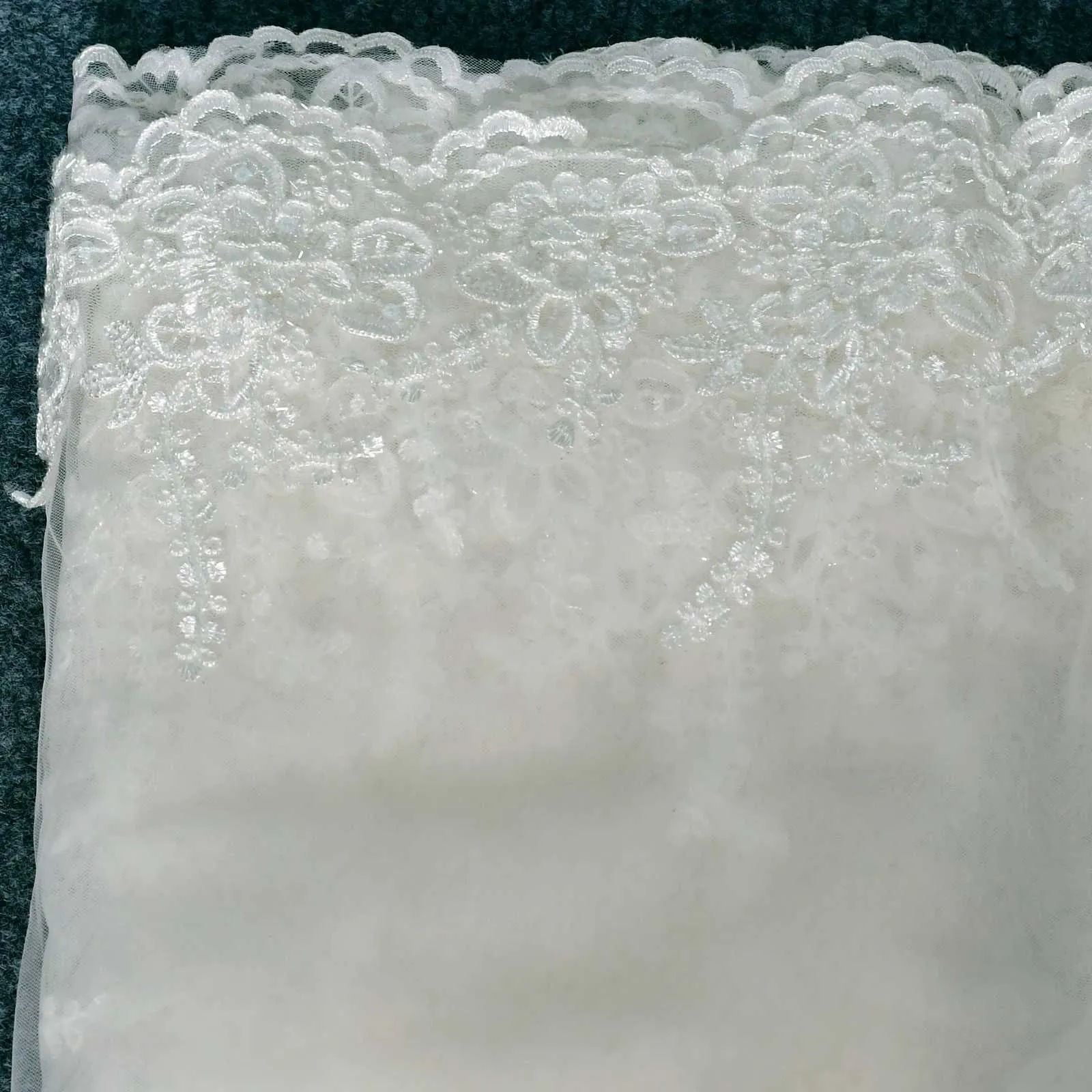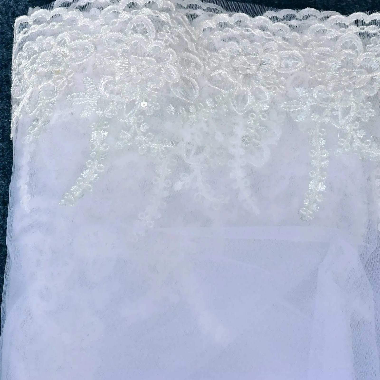 Haarschmuck v105 Langer Kathedralenschleier Spitzenrand Applikationen Brautschleier mit Rouge 2 Ebenen Hochzeitskleid Zubehör