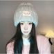 Grüne Mütze mit großem Kopfumfang, stilvolle und schöne Damen, lässt das Gesicht kleiner aussehen, Winter-Strickmütze für Damen