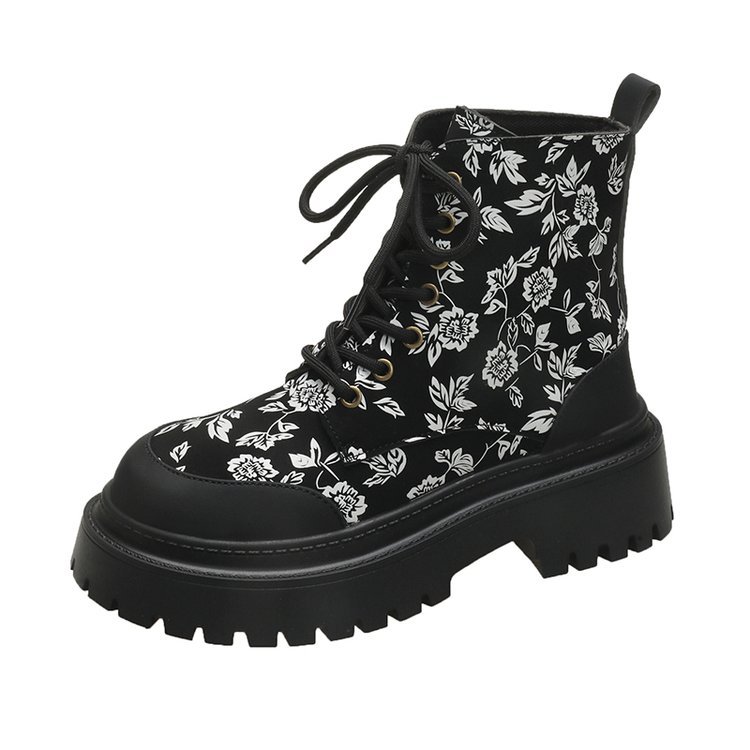 Large print fashion women's boots 2024 autumn and winter new item lace up round toe outdoor thick soled Martin boots for women