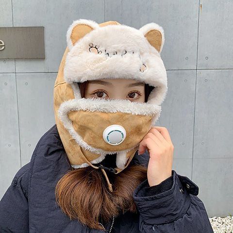 Winter Korean Style Lei Feng Hat for Women Outdoor Cycling Warm Mask with Breathing Valve Head Wrap Hat for Students Ear Protection Pullover Hat