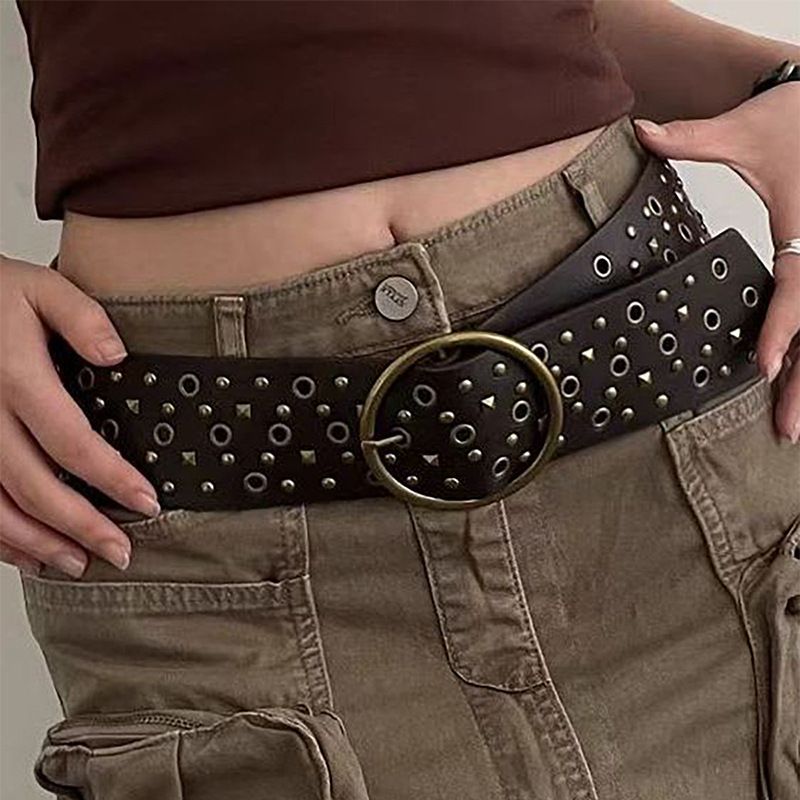 Leather Geometric Rivet Exaggerated Waist Chain Elegant High-end Fashion Versatile Waist Accessory Design Sense Niche