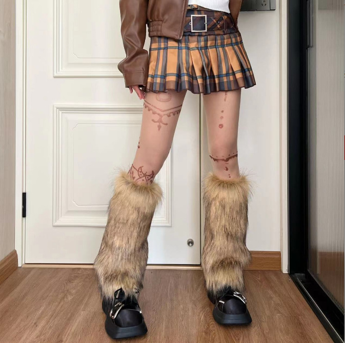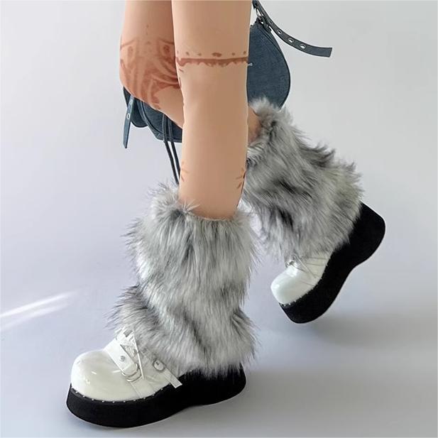 Beinstulpen Herbst und Winter Dicke Plüschsocken Retro Hot Girl Hairy Leg Sets Jk Socks Harajuku Style mit Strümpfen Imitationspelzstiefel Socken